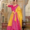 Women’s Luxurious Tussar Silk Lehenga Choli with Intricate Prints & Can-Can Flair